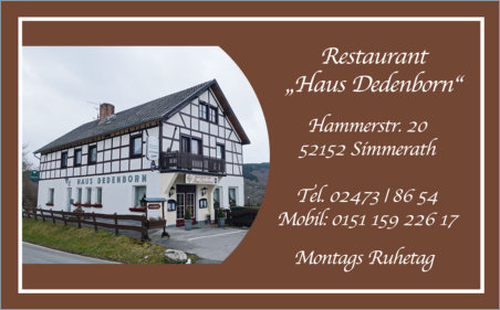 anderen Gelegenheiten auf der ganzen Linie wohlfühlen“. An fünf Tagen der Woche ist das Haus Dedenborn von morgens 11 Uhr bis ca. 20.00 Uhr geöffnet und